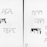Ma vorrei spostare le considerazioni su un aspetto preciso di questo Bisogno di disegnare. Come transfuga (quasi) dall’architettura costruita, amo tutti i “sogni di architettura”. C’è bisogno, oggi, di oggetti lontani, molto lontani e anche perfetti. Mentre la vita (e le idee) si muovono troppo vorticose, certi designer-poeti disegnano e disegnano, per antidoto alla crudeltà del realizzare e del costruire. Si tratta di Disegni/Design, di un paradosso completo e definito “in sé”. Sono “cose” immaginarie, oggetti mentali collocati su luoghi ideali, dentro a spazi-tempo che sprofondano nei cieli della nostalgia metafisica. Cose, spesso, inadatte alla presenza delle persone, simboli complessi, concettuali e risucchiati fuori dalla vita, che vorrebbero la presenza di un uomo perfetto, che da quei disegni è assente, che “non c’è”. Fece così Sant’Elia, fanno così oggi alcuni Maestri della Tendenza e del post-moderno che è inutile citare, è così per Alchimia, che compone centinaia di schizzi e designi, con linee appuntite e molli, aste, puntini, textures, bandiere al vento, piani e volumi, toni acri o delicati, un inesausto variare di figurazioni evocative della sua utopica città, la “città Alchimia”.